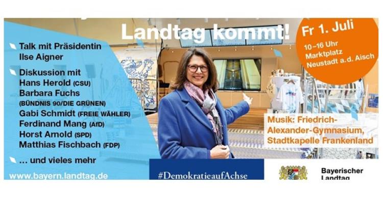Der LandTruck des Bayerischen Landtages hält in Neustadt a. d. Aisch. Politiker aller Parteien sind vertreten und stehen Rede und Antwort. Für die Freien Demokraten ist Matthias Fischbach MdB aus Erlangen vor Ort. Wir freuen uns auf zahlreichen Besuch und angeregte Diskussionen!